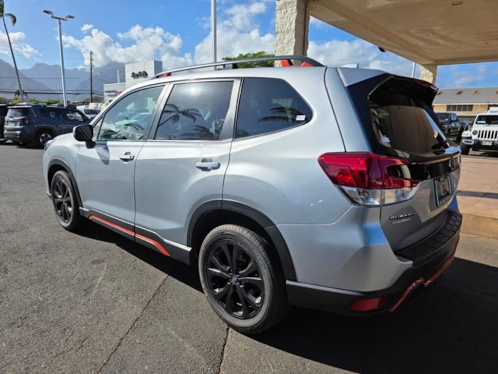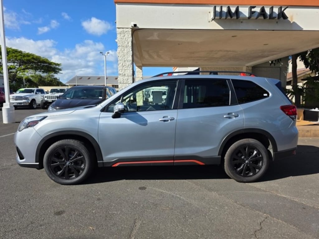 This Subaru Forester has many features and is well equipped including 3.70 Axle Ratio, 4-Wheel Disc Brakes, 6 Speakers, ABS brakes, Air Conditioning, Alloy wheels, AM/FM radio: SiriusXM, Anti-whiplash front head restraints, Auto High-beam Headlights, Automatic temperature control, Brake assist, Bumpers: body-color, CD player, Driver door bin, Driver vanity mirror, Dual front impact airbags, Dual front side impact airbags, Electronic Stability Control, Emergency communication system: STARLINK Safety and Security (Subscription Required), Exterior Parking Camera Rear, Four wheel independent suspension, Front anti-roll bar, Front Bucket Seats, Front Center Armrest, Front fog lights, Front reading lights, Fully automatic headlights, Heated door mirrors, Heated Front Bucket Seats, Heated front seats, Illuminated entry, Knee airbag, Leather Shift Knob, Low tire pressure warning, Occupant sensing airbag, Outside temperature display, Overhead airbag, Overhead console, Panic alarm, Passenger door bin, Passenger vanity mirror, Power door mirrors, Power driver seat, Power moonroof: Panoramic, Power steering, Power windows, Radio data system, Radio: Subaru Starlink 6.5" Multimedia Plus System, Rear anti-roll bar, Rear seat center armrest, Rear window defroster, Rear window wiper, Remote keyless entry, Roof rack: rails only, Security system, Speed control, Speed-sensing steering, Split folding rear seat, Spoiler, Sport Cloth Upholstery, STARLINK/Apple CarPlay/Android Auto, Steering wheel mounted audio controls, Tachometer, Telescoping steering wheel, Tilt steering wheel, Traction control, Trip computer, Turn signal indicator mirrors, Variably intermittent wipers, and Wheels: 18" x 7.0 J Black Finish Aluminum-Alloy. Ice Silver Metallic 2023 Subaru Forester Sport AWD Lineartronic CVT 2.5L 4-Cylinder DOHC 16V