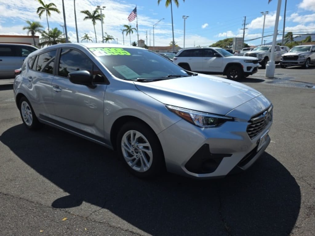 This Subaru Impreza has many features and is well equipped including 4 Speakers, 4-Wheel Disc Brakes, ABS brakes, Air Conditioning, Alloy Wheels, AM/FM radio: SiriusXM, Anti-whiplash front head restraints, Auto High-beam Headlights, Automatic temperature control, Brake assist, Bumpers: body-color, Cloth Upholstery, Driver door bin, Driver vanity mirror, Dual front impact airbags, Dual front side impact airbags, Electronic Stability Control, Exterior Parking Camera Rear, Four wheel independent suspension, Front anti-roll bar, Front Bucket Seats, Front Center Armrest, Front dual zone A/C, Front reading lights, Fully automatic headlights, Illuminated entry, Knee airbag, Low tire pressure warning, Occupant sensing airbag, Outside temperature display, Overhead airbag, Overhead console, Panic alarm, Passenger door bin, Passenger vanity mirror, Power door mirrors, Power steering, Power windows, Radio data system, Radio: Subaru Dual 7" Multimedia System, Rear window defroster, Rear window wiper, Remote keyless entry, Security system, Speed control, Speed-sensing steering, Split folding rear seat, Spoiler, Steering wheel mounted audio controls, Tachometer, Telescoping steering wheel, Tilt steering wheel, Traction control, Trip computer, Variably intermittent wipers, Wheels: 16" x 6.0" 1/2J Silver Aluminum Alloy, and Wheels: 16" x 6.0" 1/2J Steel w/Full Cap. Ice Silver Metallic 2025 Subaru Impreza AWD CVT Lineartronic 2.0L DOHC