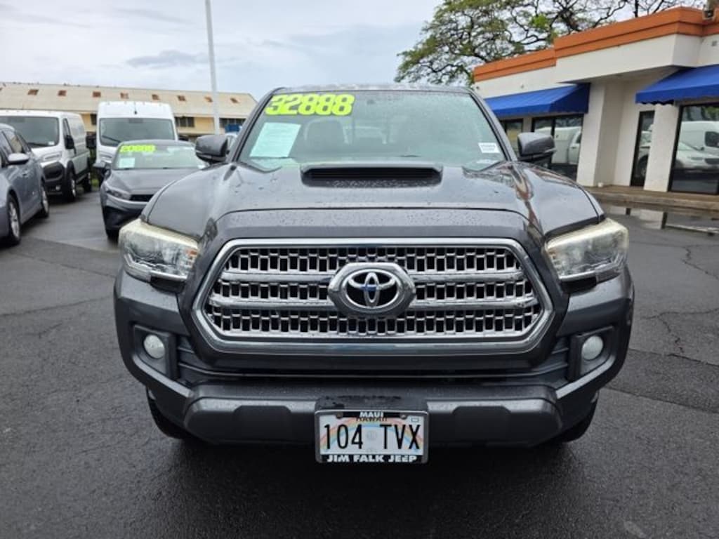 This Toyota Tacoma has many features and is well equipped including ABS brakes, Air Conditioning, AM/FM radio: SiriusXM, Anti-whiplash front head restraints, Axle Ratio: 3.91, Brake assist, Bumpers: body-color, CD player, Driver door bin, Dual front impact airbags, Dual front side impact airbags, Electronic Stability Control, Exterior Parking Camera Rear, Front anti-roll bar, Front Bucket Seats, Front Center Armrest, Front fog lights, Front reading lights, Front wheel independent suspension, Illuminated entry, Knee airbag, Low tire pressure warning, Occupant sensing airbag, Outside temperature display, Overhead airbag, Overhead console, Panic alarm, Passenger door bin, Power door mirrors, Power steering, Power windows, Rear step bumper, Remote keyless entry, Speed control, Speed-sensing steering, Split folding rear seat, Steering wheel mounted audio controls, Tachometer, Telescoping steering wheel, Tilt steering wheel, Traction control, Trip computer, and Variably intermittent wipers. Gray 2016 Toyota Tacoma RWD 6-Speed Automatic V6